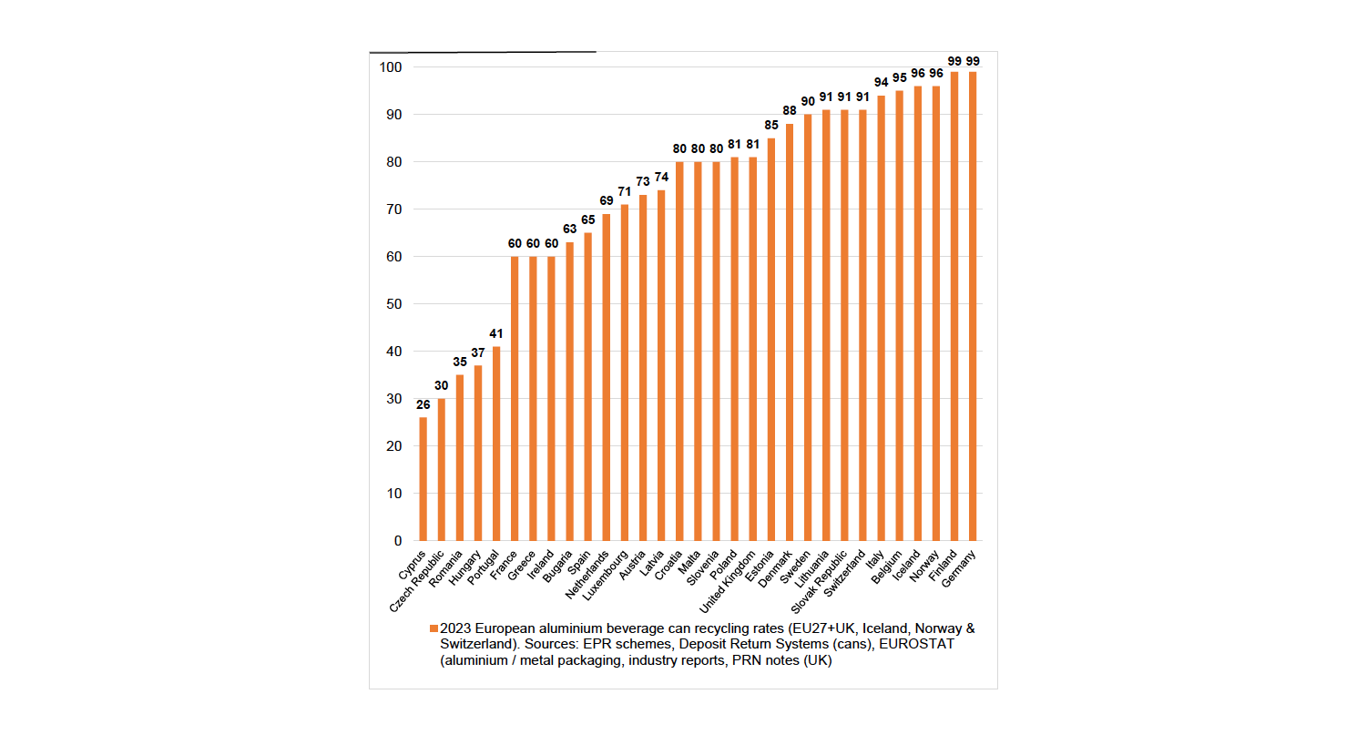 Hoewel het resultaat in 2023 wat achterbleef met 69% heeft Nederland zich inmiddels fors verbeterd met 14 procentpunten naar 83% in 2024, het meest recente reportage-jaar. Dit is nog niet meegenomen in het overzicht van European Aluminium en Metal Packaging Europe.