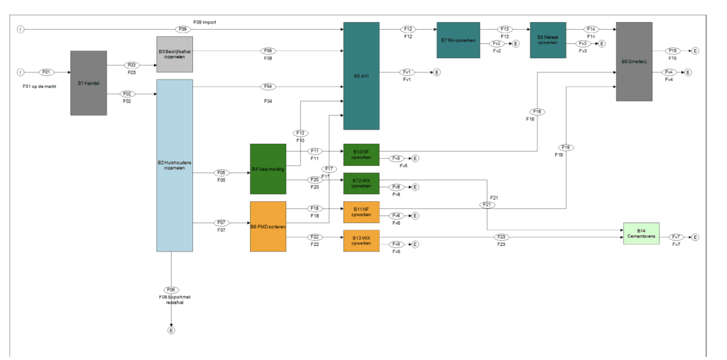 In een materiaalstroommodel zijn alle relevante inzamel- en recyclingketens beschreven van aluminiumverpakkingen en verwante consumentenartikelen (zoals bijvoorbeeld aluminium huishoudfolie) in Nederland. Van elke deelstap zijn zoveel mogelijk openbare gegevens verzameld. Voor ontbrekende gegevens zijn beargumenteerde veronderstellingen gedaan.